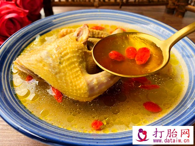 (4)乳鸽枸杞汤。乳鸽1只,枸杞30克,盐少许。将乳鸽去毛及内脏杂物,洗净,放入锅内加水与枸杞共炖,熟时加盐少许。吃肉饮汤,每日2次。具有益气、补血、理虚作用。适用于人工流产后体虚及病后气虚、体倦乏力、表虚自汗等症。